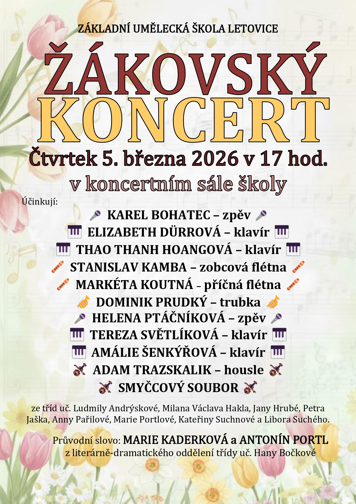 - 17 hod. koncertní sál školy